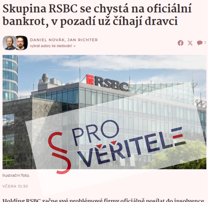 12. 8. 2025Skupina RSBC, patřící k významným investičním holdingům, vlastněná podnikatelem Robertem Schönfeldem, se ocitla v akutní finanční krizi. Podle zveřejněných informací i dopisu vlastníka skupina nedisponuje dostatečnou hotovostí k úhradě splatných závazků, včetně dluhopisů a úroků. RSBC oznámila zahájení restrukturalizace některých divizí a současně vede jednání s potenciálními investory.